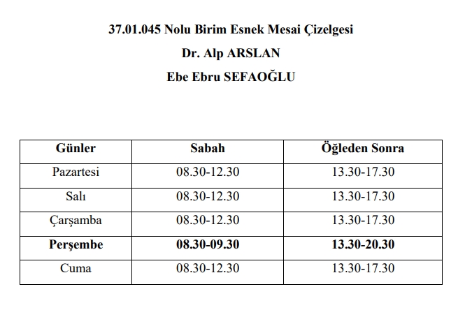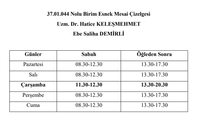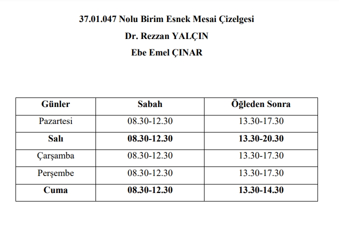 08:30-09:30 ve 12:30-20:30 saatleri arasındadır.
